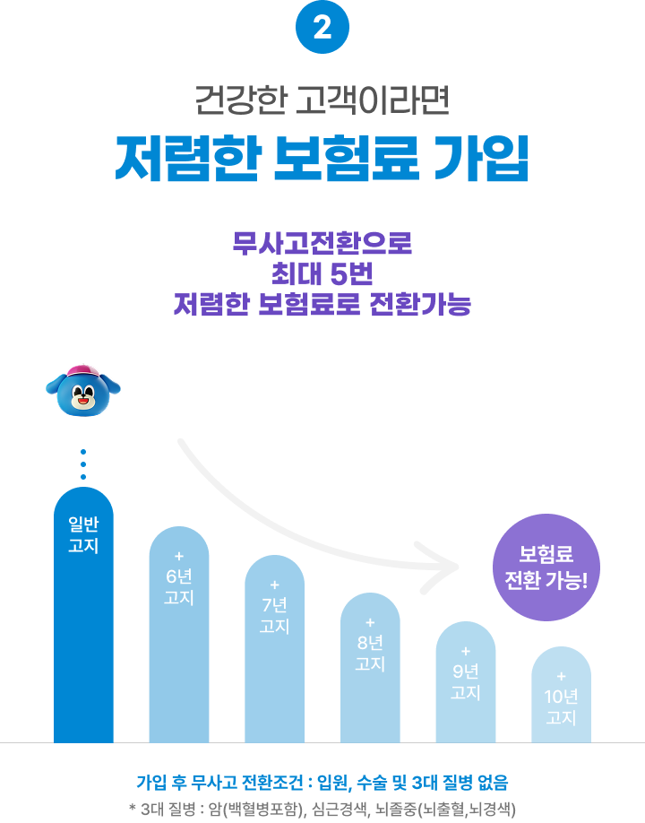 - 해약환급금 미지급형 : 보험료 납입기간 중 계약이 해지될 경우 해약환급금이 없는 대신 해약환급금 지급형 대비 낮은 보험료로 가입